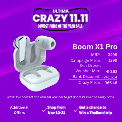 (New Launch) Ultima Boom X1 Pro Earbuds | Ultima Supreme Sound | Hi-Fidelity Dynamic Drivers | Swift Charge Tech | 40 Hrs Playback Time | ENC upto 32dB with Quad Mic | 50ms Low Latency Game Mode