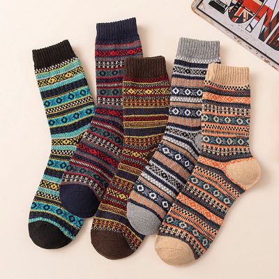 Thick Vintage Patterned Woolen Socks - Free Size - Pack Of 5 Pairs