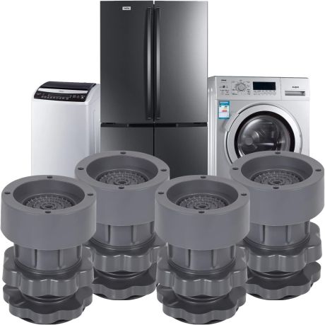 4 pc Height Adjustable Anti-Vibration Pads | Shock & Noise Cancelling Stand for Washing Machine, Dryer, Refrigerator, Dishwasher & Furniture | Heavy-Duty Appliance Base Pads