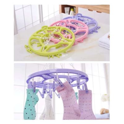 Circle socks hanger plate household plastic clip rotating windproof clothespin plastic hangers for clothes underwear bra rack Pack of 1 set
