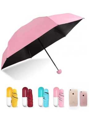 Compact Pocket Umbrella with Cute Capsule Case - For Sun & Rain Protection