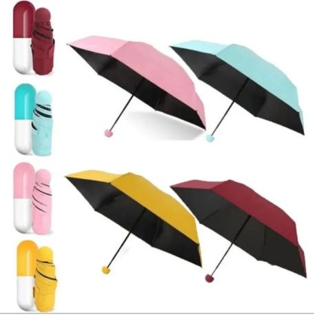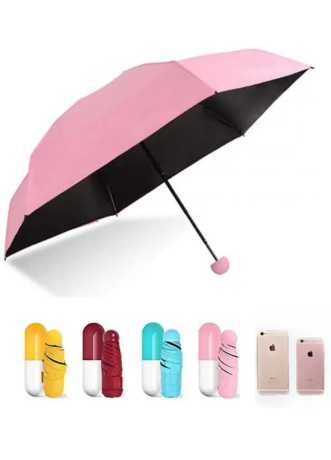 Small Mini Umbrella with Cute Capsule Case,5 Folding Compact Pocket Umbrella, Especially for Kids (Multicolor, Color As Per Availability) Umbrella
