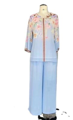 Premium 2-Piece Floral Print Kurti Set with Palazzo Trousers - Stylish V-Neck Georgette Suit for Women - Elegant Summer Wear Matching Set for Ladies - Floral Top and Wide Leg Pant Suit