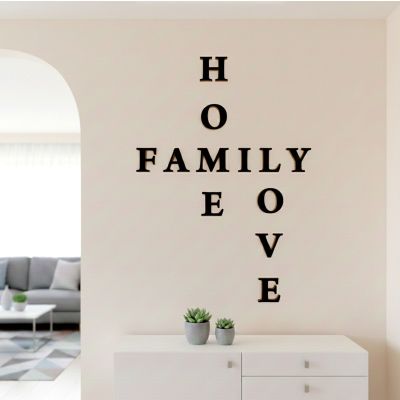 Premium 3D Wooden Wall Alphabet - Peel and Stick on wall - Home Family Love Crossword Decor / Cutout Letters for Home Decoration / Wall Art / Wall Decor for Living Room