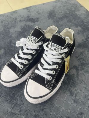 Women’s Black Canvas Low-Top Lace-Up Sneakers | Classic Casual Shoes