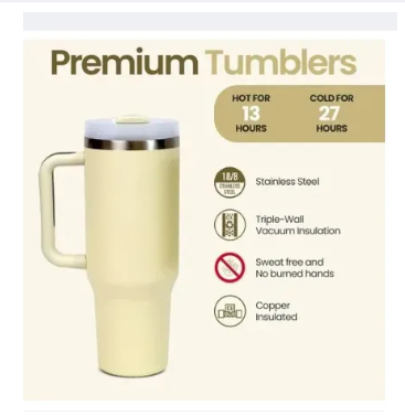 Premium Stainless Steel Stanley Tumbler, with Straw and Handle, Leakproof, Vacuum Insulated Travel Coffee Mug, Reusable Double Walled Water Bottle, Keeps Hot or Cold 1200 m