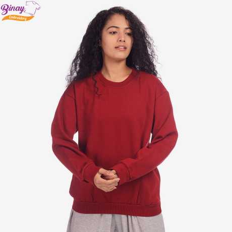Binay Embroidery Maroon Full Sleeve Plane Light Weight Sweatshirt T-shirt -For Women - Fashion | T-Shirts |