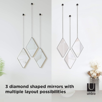 Trivera Diamond Real Mirror Set and Metal hanging Chain l Beautiful Wall Decor l Home and Office Decor l 3Pc Set (Not a Sticker)