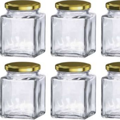 MM 5 Piece Glass Jars / Jar 300 ml with Golden Lid Anti-Leak Jar with Metal Lid Container/Containers