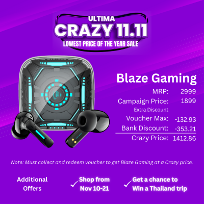 Ultima Blaze Gaming Earbuds with ANC | 42 Hours Playtime | 4 Mics with ENC | 15 Meters Range | Dual Tone with Blazing LEDs | Rampage Mode (40 MS) | IPX4 Rated | 5C BOOST Charging Wireless Earbuds