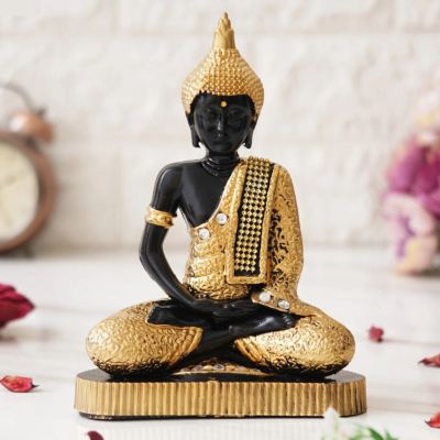 Salcko Resin Sitting Golden Buddha Idol Statue For Home Office, Decor, Showpiece, Figurines, Home Decor Items, Gift Item