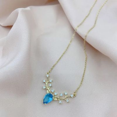 1 Piece New Zircon Blue Crystal Elk David Deer Charm Clavicle Pendant Chain Necklace For Women - Best Gift Ever