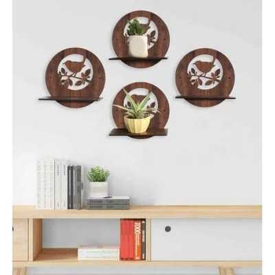 AeromaX Wall Shelves Décor Stands and Flower Pots Stand for Home Planters, Terrace, Garden Pack of 4, Color- Brown